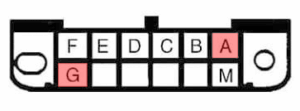 2. Localice el conector de diagnóstico localizado debajo del volante y conecte un puente entre el punto “A” y “G”. Los seguros ciclarán indicando que se entró a modo de programación.
